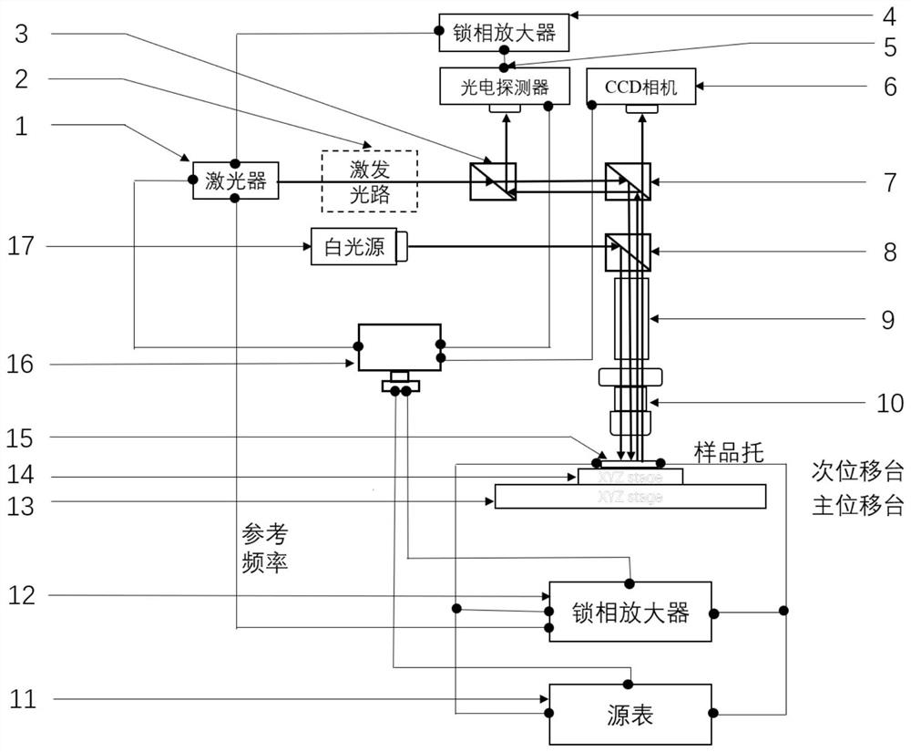 公开号(授权)CN115436364B公开日期(授权)2025.03.21申请人(授权)南京航空航天大学发明人(授权)刘衍朋; 吴晓玥; 林繁荣IPC分类(授权)G01N21/84;G01N21/01;G01N21/21本发明公开了一种自旋和能谷极化信号的无损成像系统,包括XY扫描位移台、激光器、光电探测器、若干锁相放大器和CCD相机。通过设置微米级高精度XY扫描...