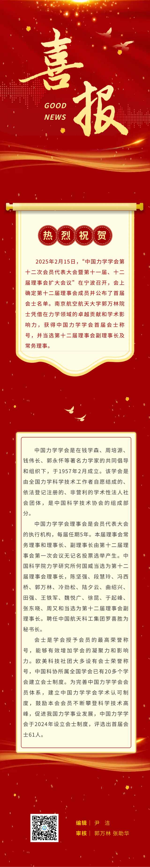 郭万林院士当选中国力学学会首届会士并担任副理事长