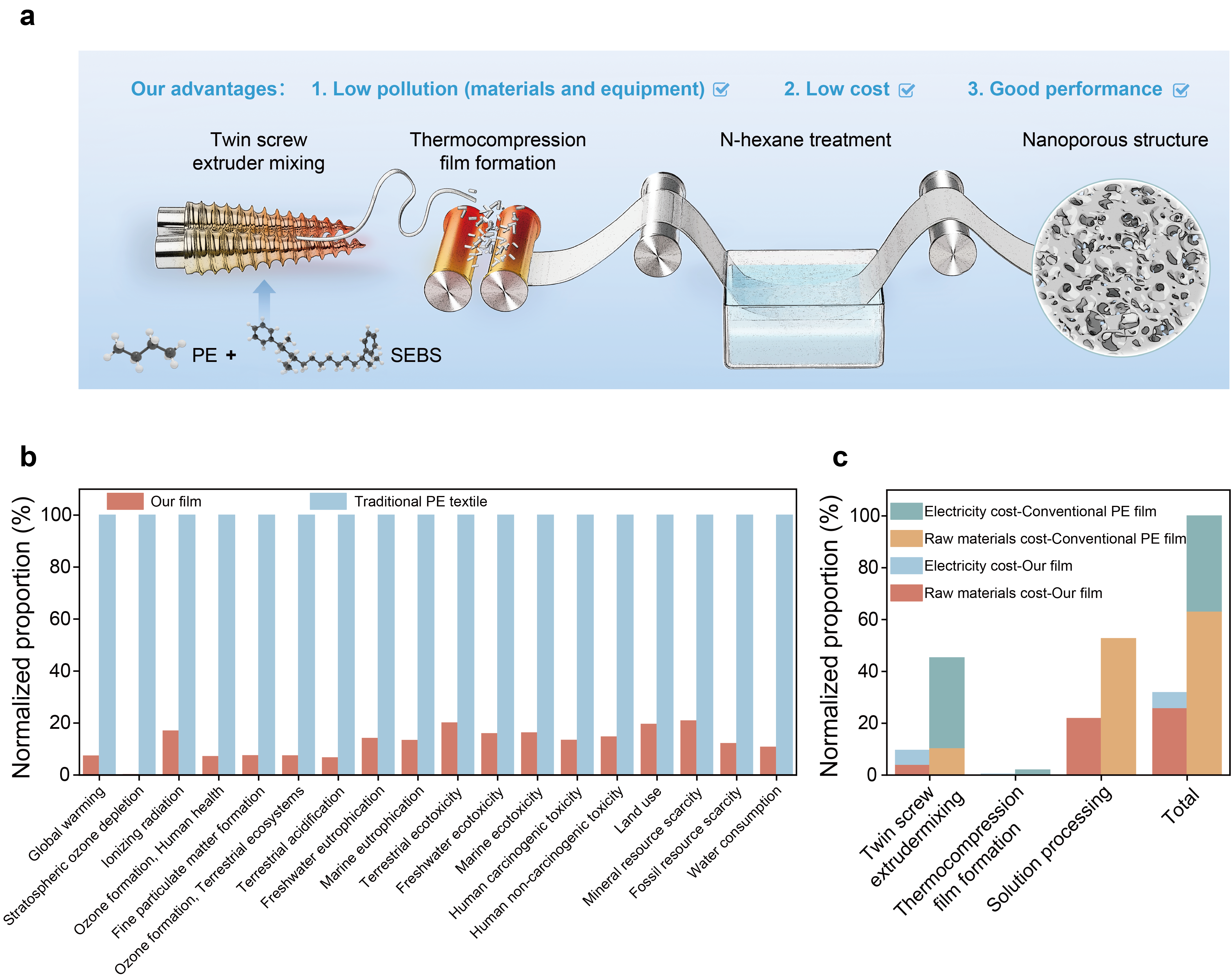 在全球气候变暖的挑战下,日间辐射制冷技术以其零能耗、低污染的独特优势,正成为绿色降温领域的新焦点。其中,能够同时高效反射太阳光并透射人体热辐射的透射型制冷材料,凭借其相较于发射型材料更低的热阻和更强的冷却潜力,为个人热管理提供了全新的技术路径。然而,现有制备方法面临成本高、污染重、性能有限等多重瓶颈,制约了其规模化应用进程。